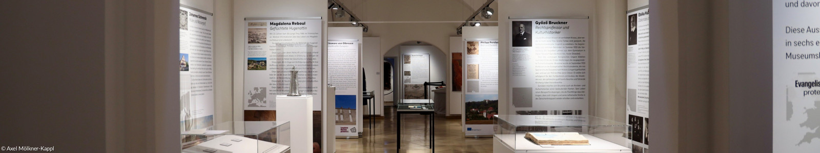 Die gemeinsame Ausstellung stellt einen Zusammenschnitt mit Beiträgen aller beteiligten Projektpartnerinnen und -partner dar und ist als Wanderausstellung konzipiert. Auf 22 Plakaten werden Menschen vorgestellt, deren Biografien geprägt sind von Migration und exemplarisch für eine ganze Wanderbewegung stehen. Daneben lassen besondere Exponate, wie die Abendmahlskanne von Exulant Johannes Schrenck oder der Diakonissentracht der Oberin des Diakonissen-Mutterhauses Lehmgruben, die Schicksale lebendig werden.